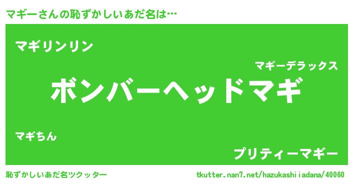 | ヘコむあだ名 | 『マギっちょ』『マギにー』 |
