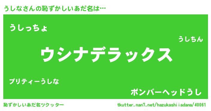 | ヒーロー風カッコイイあだ名 | 『サイバー戦士ウシナ』『仮面ウシダー』 |