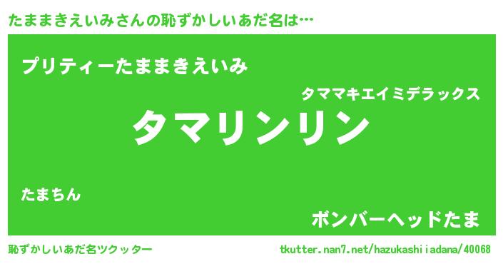 | 男性向けラノベタイトル風あだ名 | 『緋弾のタママキエイミ』 |