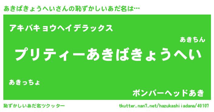 | ヒーロー風カッコイイあだ名 | 『スーパーアキバキョウヘイ』 |