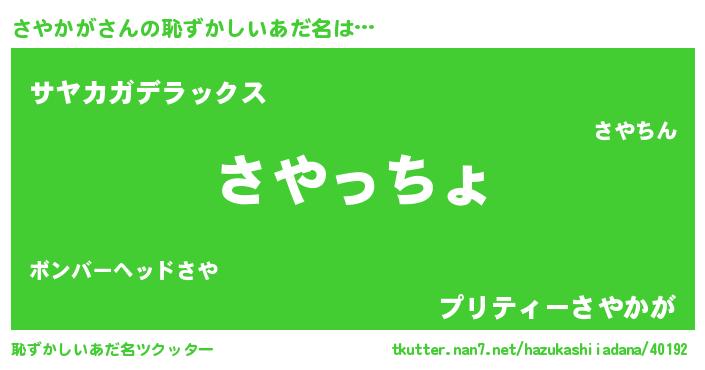| ポケモン風あだ名 | 『サヤカダネ』『サヤキング』 |