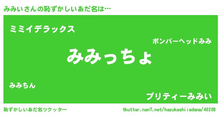 | 意味不明あだ名 | 『みみいフォーエバー』『自称みみい』 |
