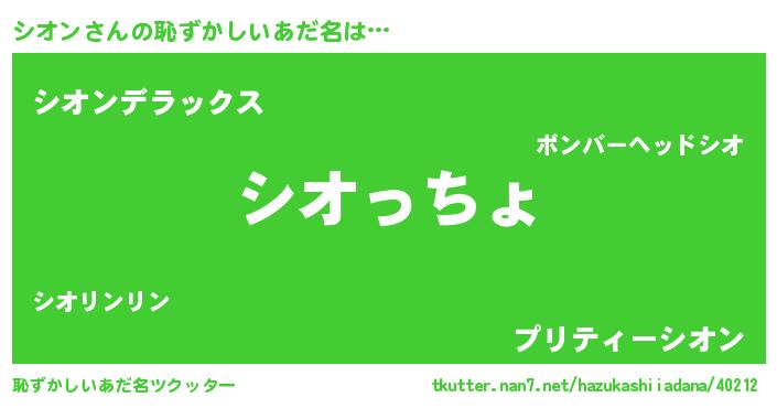 | 可愛いあだ名 | 『シオちー』『シオうちぇる』 |