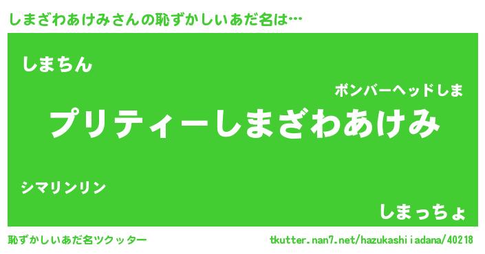 | 意味不明あだ名 | 『ペロリンしまざわあけみ』 |