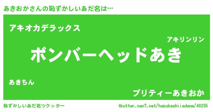 | ヒーロー風カッコイイあだ名 | 『正義の使者あきおか』『仮面アキダー』 |