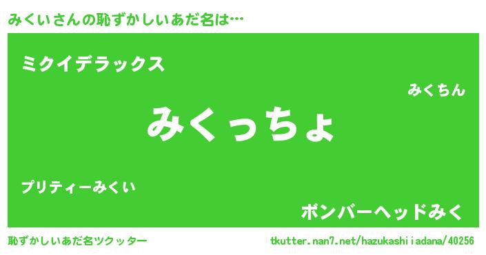| 意味不明あだ名 | 『みくいフォーエバー』『自称みくい』 |