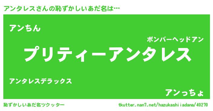 | ヘコむあだ名 | 『アンにー』『アンタレス(震え声)』 |