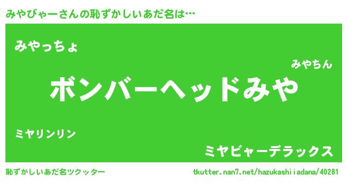 | ヒーロー風カッコイイあだ名 | 『天空の使者みやびゃー』『仮面ミヤダー』 |