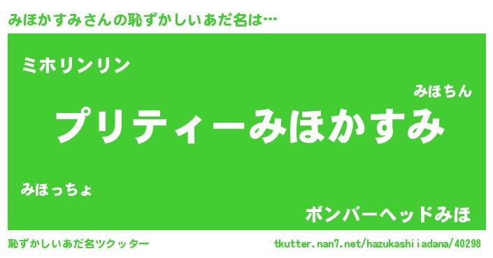 | ヘコむあだ名 | 『みほにー』『みほぷりん』『豆乳』 |
