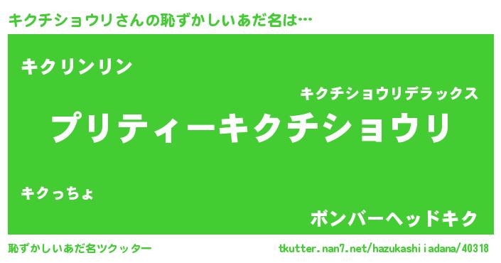 | 欧米人風あだ名 | 『マイケルキクチショウリ』 |
