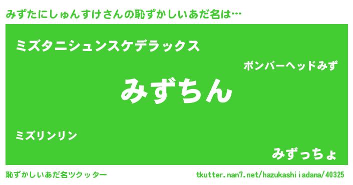 | ヘコむあだ名 | 『みずたにしゅんすけ(笑)』『牛乳』 |