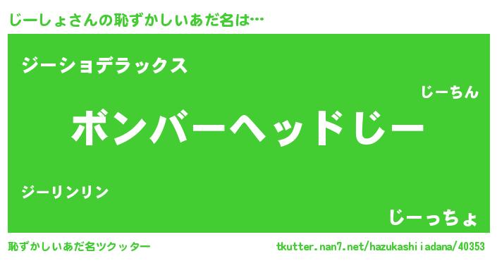 | 欧米人風あだ名 | 『アンジェラ・じーしょ』 |