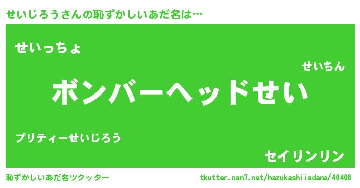 | 男性向けラノベタイトル風あだ名 | 『おまえをオタクにしてやるから、俺をせいじろうにしてくれ! 』 |