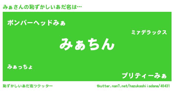 | 胡散臭い通販商品みたいなあだ名 | 『来世でも幸せになれる健康食品…その名も「みぁ」』 |