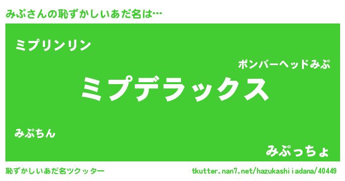 | 男性向けラノベタイトル風あだ名 | 『Re:みぷから始める異世界生活』 |