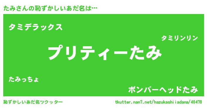 | ポケモン風あだ名 | 『タミチュウ』『タミセウス』 |