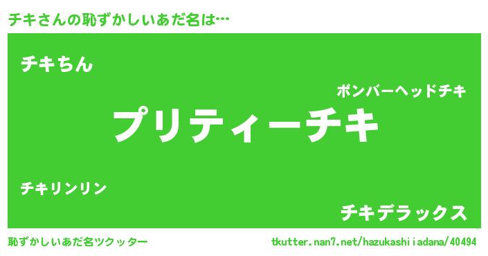 | ヘコむあだ名 | 『チキにー』『チキ(笑)』『チキ太郎』 |