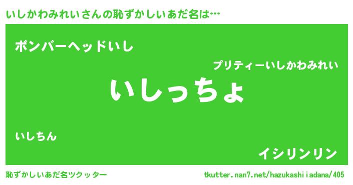 | 意味不明あだ名 | 『いしかわみれいフォーエバー』 |