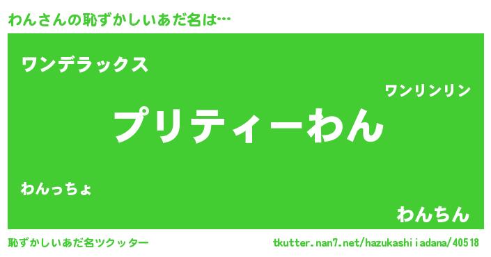 | 意味不明あだ名 | 『ペロリンわん』『自称わん』 |