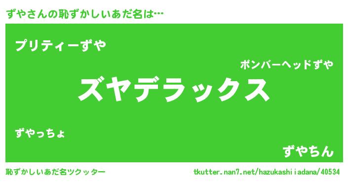 | ポケモン風あだ名 | 『ズヤセウス』『ズヤチュウ』 |