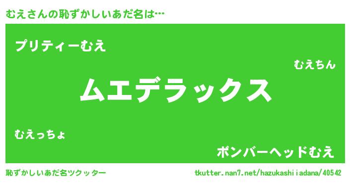 | 意味不明あだ名 | 『自称むえ』『ペロリンむえ』 |