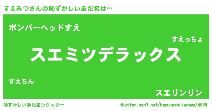 | 意味不明あだ名 | 『自称すえみつ』『すえみつフォーエバー』 |