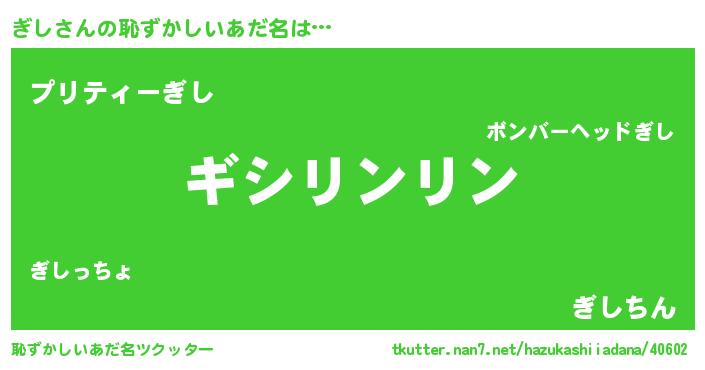 | ヘコむあだ名 | 『ぎしを』『ぎしにゅー』『なまこ酢』 |