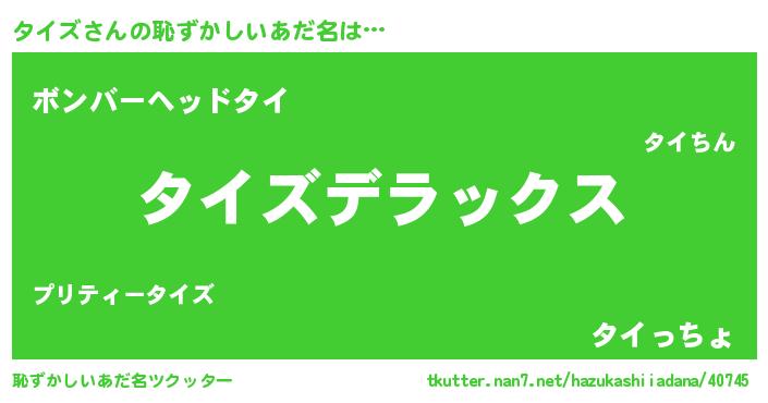 | ヒーロー風カッコイイあだ名 | 『仮面タイダー』『最強戦士タイズ』 |