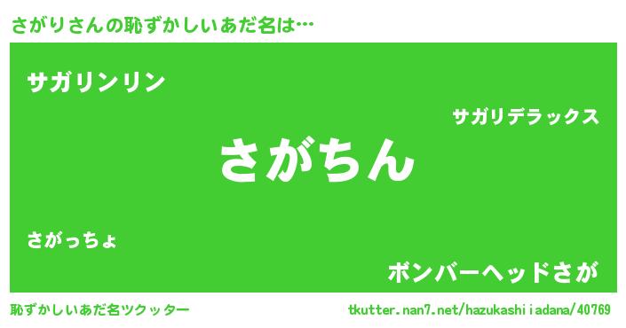 | 意味不明あだ名 | 『永久保存さがり』『自称さがり』 |
