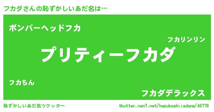 | ヘコむあだ名 | 『フカにー』『フカお』『レバニラ』 |