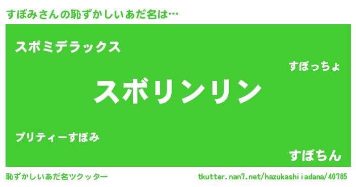 | ヘコむあだ名 | 『すぼっちょ』『すぼみ(笑)』 |