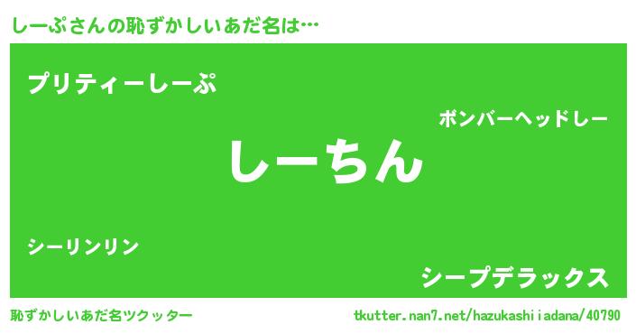 | 意味不明あだ名 | 『永久保存しーぷ』『ペロリンしーぷ』 |