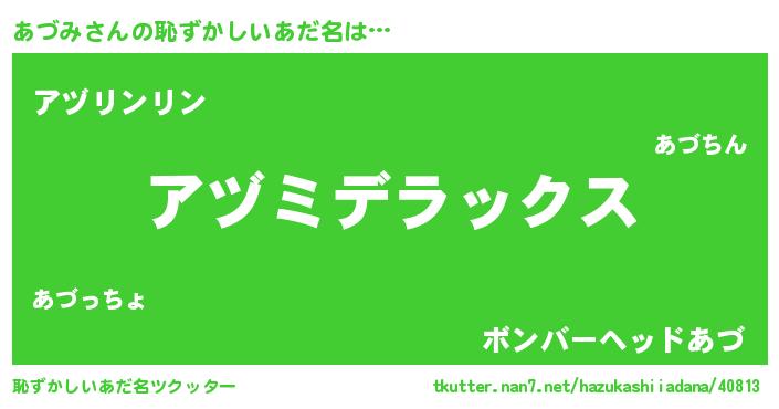 | ヒーロー風カッコイイあだ名 | 『超時空戦士アヅミ』『銀牙騎士アヅ』 |