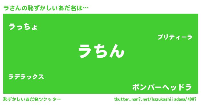 | ヘコむあだ名 | 『ラ(苦笑)』『なまこ酢』『ラにー』 |