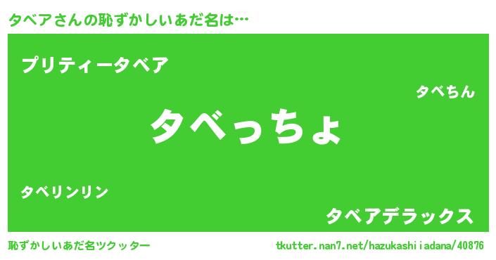 | 欧米人風あだ名 | 『ダレノガレタベア』『タベアクリステル』 |