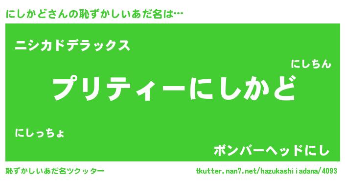 | 男性向けラノベタイトル風あだ名 | 『にしかどの憂鬱』『魔弾の王とにしかど』 |