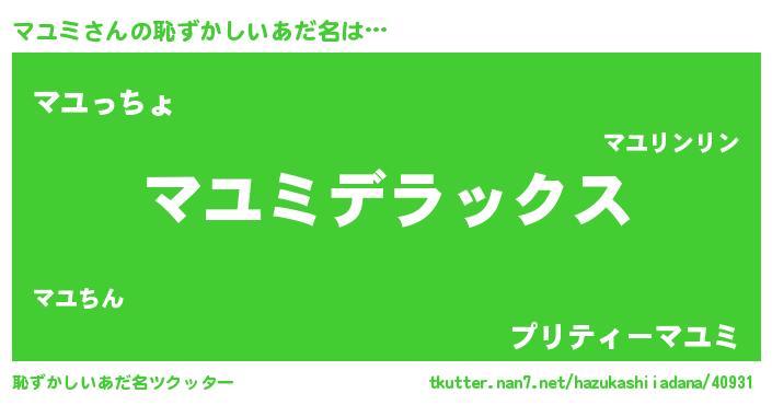 | 欧米人風あだ名 | 『マユミ・ステッグマイヤー』 |