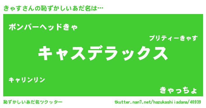 | ヒーロー風カッコイイあだ名 | 『仮面キャダー』『究極戦士キャス』 |