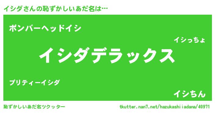 | 意味不明あだ名 | 『自称イシダ』『眠気覚ましガムイシダ味』 |