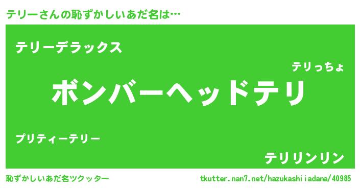 | ヒーロー風カッコイイあだ名 | 『慈愛の使者テリー』『仮面テリダー』 |