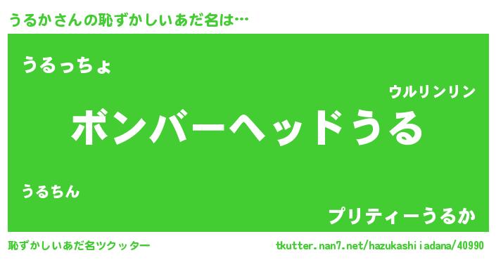 | ヒーロー風カッコイイあだ名 | 『愛の使者うるか』『ウルトラうるかマン』 |