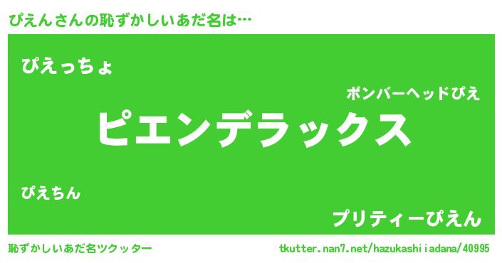 | ヒーロー風カッコイイあだ名 | 『最強戦士ピエン』『ウルトラぴえんマン』 |
