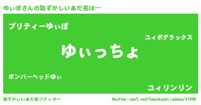 | ヒーロー風カッコイイあだ名 | 『ウルトラゆぃぽマン』『スーパーユィポ』 |