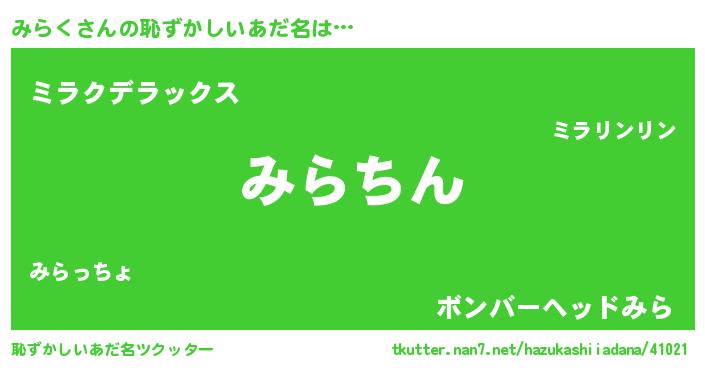 | ヘコむあだ名 | 『みらく(震え声)』『みらぷりん』 |