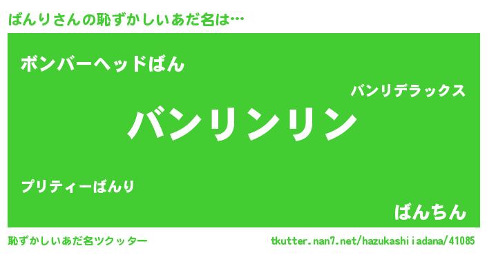 | 欧米人風あだ名 | 『ウサインばんり』『ダレノガレばんり』 |