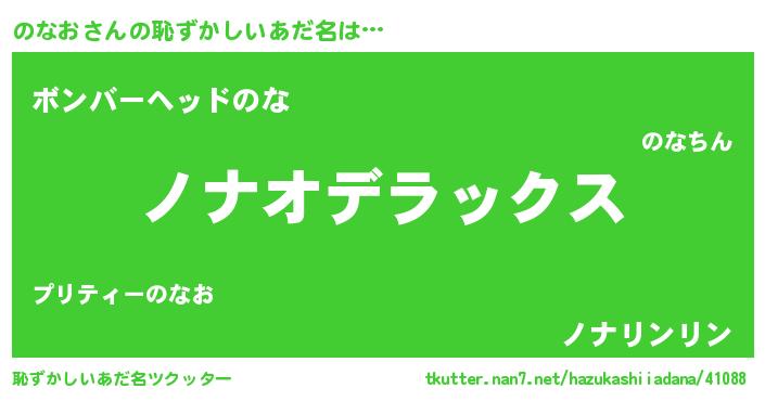 | ヘコむあだ名 | 『のなっ子』『のなお(爆)』『豆乳』 |