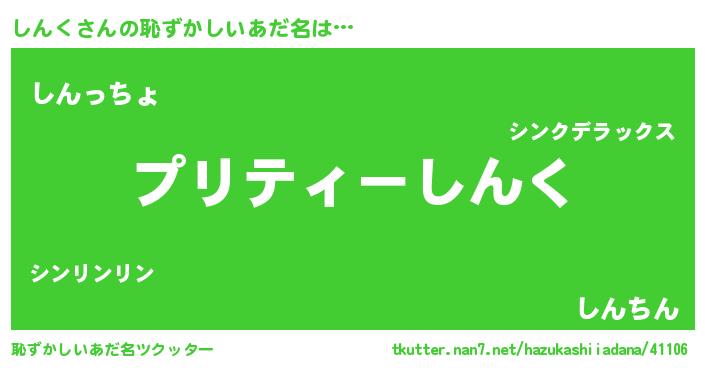 | 意味不明あだ名 | 『ペロリンしんく』『しんくフォーエバー』 |