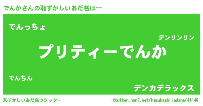 | 欧米人風あだ名 | 『アンジェラ・でんか』『マイケルでんか』 |
