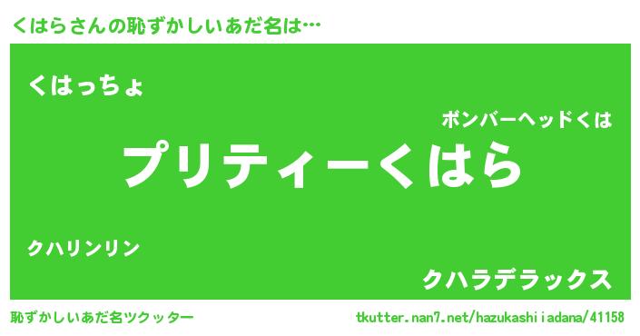 | 意味不明あだ名 | 『住所不定無職くはら(86歳)』『自称くはら』 |