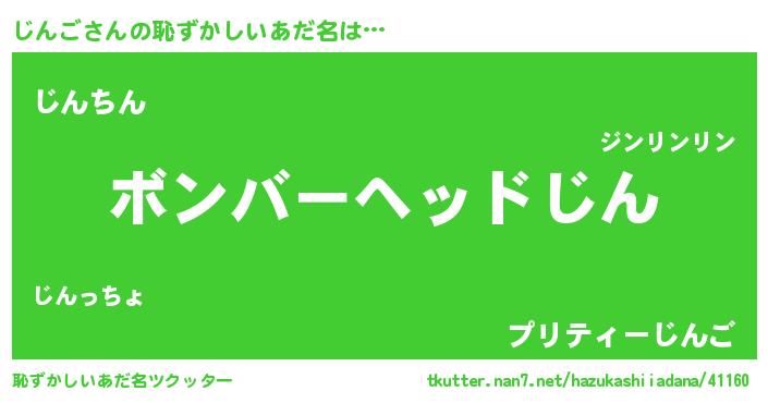 | ヘコむあだ名 | 『じんご(笑)』『じんもー』『じんを』 |